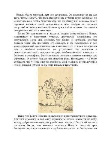 Затем бог сам является в вихре и, осудив слова молодого Елиуя,